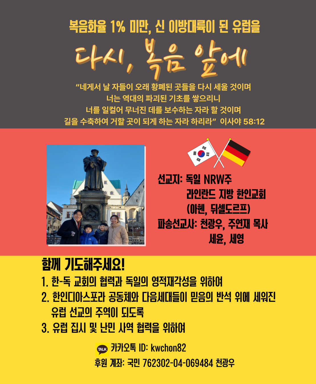 [기도제목] 천광우, 주연재 선교사